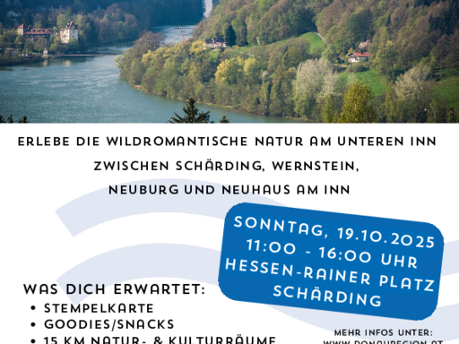 Treffpunkt ist der Hessen-Rainer-Platz, Innbruckstraße 29 in A-4780 Schärding. Start der Wanderung ist um 11:00 Uhr. Zu Beginn erhalten alle Teilnehmenden eine Stempelkarte, die unterwegs an vier Stationen abgestempelt werden kann.